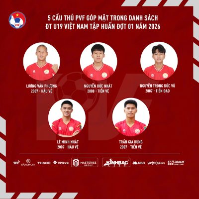 Tin vui đến với đại gia đình PVF khi có tới 6 đại diện được triệu tập trong đợt tập huấn đầu tiên năm 2026 của Đội tuyển U19 Việt Nam.