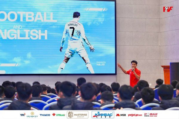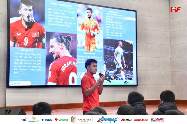 Tối ngày 7/1, trong không khí gần gũi và cởi mở tại hội trường Trung tâm Đào tạo Bóng đá trẻ PVF, cầu thủ Nguyễn Quốc Khánh – hiện đang thi đấu cho đội Trẻ PVF-CAND – đã có buổi chia sẻ thân mật cùng các học viên đang sinh hoạt và tập luyện tại Trung tâm. Buổi gặp gỡ xoay quanh chủ đề học tập và trau dồi tiếng Anh, một kỹ năng ngày càng quan trọng đối với cầu thủ bóng đá trẻ trong môi trường hội nhập.