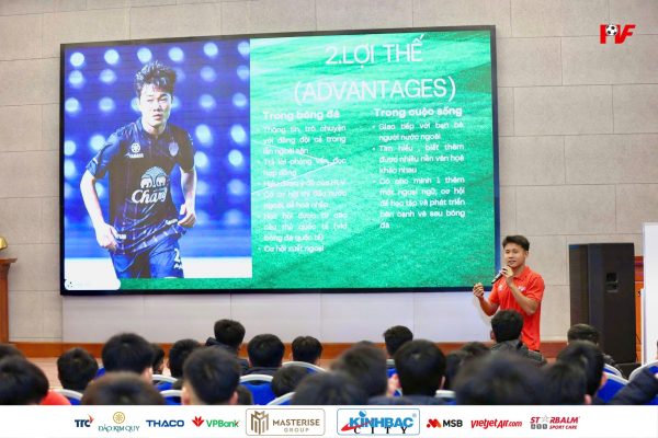Chính vì vậy, buổi chia sẻ của Nguyễn Quốc Khánh không chỉ dừng lại ở câu chuyện học tập cá nhân, mà còn mang ý nghĩa định hướng lâu dài cho các học viên PVF. Thông qua những trải nghiệm thực tế, Quốc Khánh đã góp phần khơi gợi tư duy chuẩn bị cho tương lai, tiếp thêm động lực để các cầu thủ trẻ nghiêm túc trau dồi ngoại ngữ, từng bước hoàn thiện bản thân, hướng tới hình mẫu cầu thủ hiện đại trong môi trường bóng đá chuyên nghiệp.