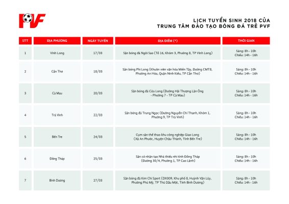 Trung tâm Đào tạo Bóng đá trẻ PVF trân trọng giới thiệu Lịch tuyển sinh [...]