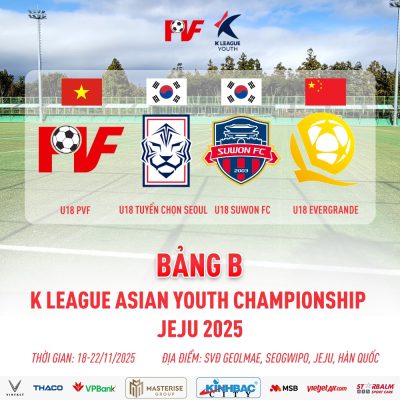 Theo kết quả bốc thăm chia bảng K League Asian Youth Championship Jeju, U18 PVF được xếp vào bảng B cùng U18 Tuyển chọn Seoul (Hàn Quốc), U18 Suwon FC (Hàn Quốc) và U18 Học viện Evergrande (Trung Quốc).