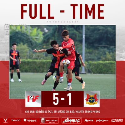 Các học trò của ban huấn luyện U19 PVF nhập cuộc chủ động, kiểm soát tốt thế trận và tạo ra nhiều tình huống nguy hiểm. Sự vượt trội về chuyên môn được cụ thể hóa bằng 5 bàn thắng, trong đó Nguyễn Du tỏa sáng rực rỡ với cú hat-trick, trong khi các bàn thắng còn lại được ghi bởi Nguyễn Trọng PhongBùi Vương Gia Bảo.